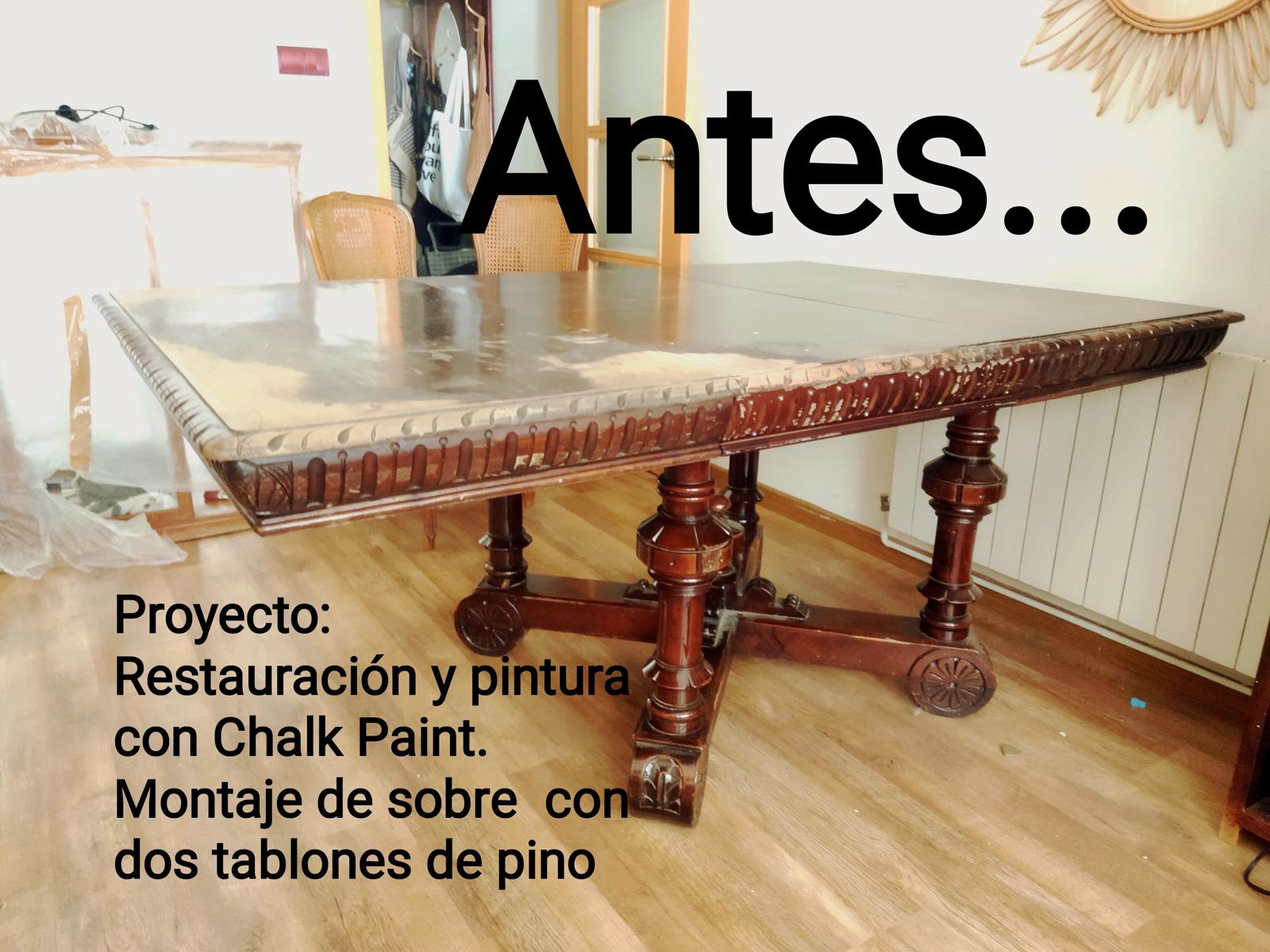 Esta mesa, un valioso legado familiar, tenía un gran significado sentimental. El objetivo era combinar un estilo sobrio con la belleza de la madera natural de pino. Para lograrlo, realicé un acabado envejecido utilizando chalk paint, que resalta la textura de la madera y aporta un aire sofisticado y atemporal, manteniendo su esencia original y dándole una nueva vida.